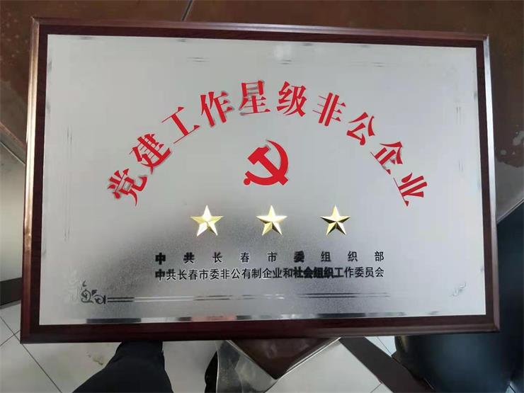 2020年長春市寬城區(qū)黨建工作星級評定中,榮獲非公企業(yè)黨建工作三星級